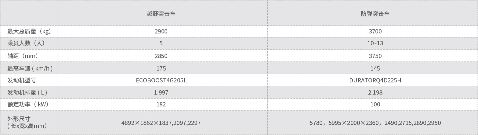 全車四面防彈,車身及玻璃滿足防暴車A級(jí)標(biāo)準(zhǔn),輪胎滿足中彈后行駛30km以上。