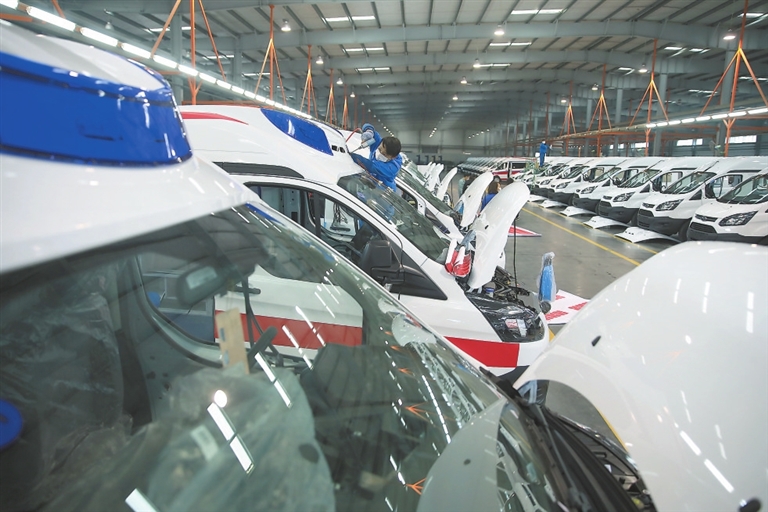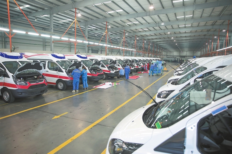對(duì)生產(chǎn)好的救護(hù)車進(jìn)行檢測(cè)。